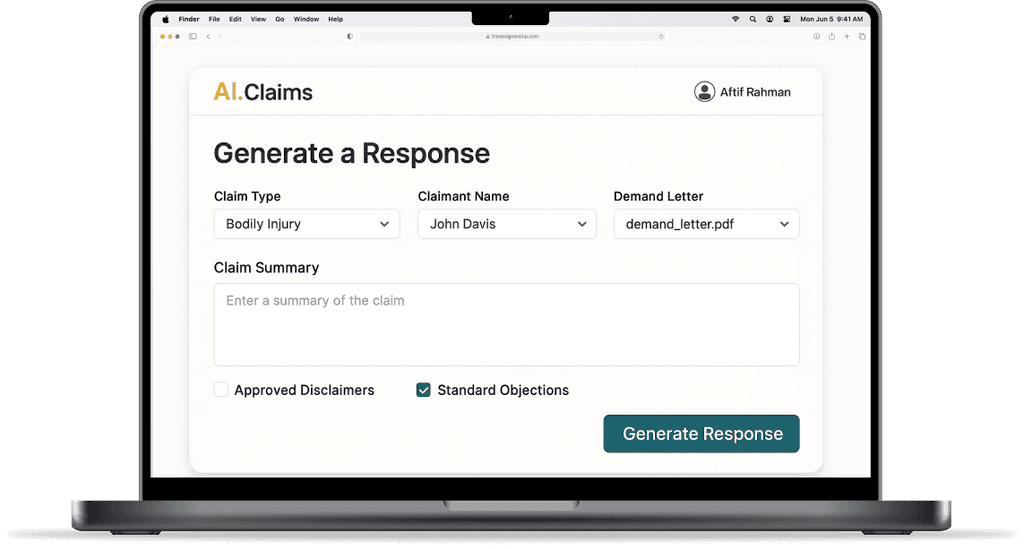 AI.Claims quickly spots weak points in a claim. We can flag issues with coverage like policy limits, exclusions, or signs of intentional behavior. We can compare police reports and witness statements to highlight questions about who was really at fault. AI.Claims can also help spot excessive treatment, claims that don’t match the injuries, and damages that don't match injury. After we find the holes and soft spots in the file, AI.Claims addresses each in the demand response letter to reduce payouts and improve leverage.